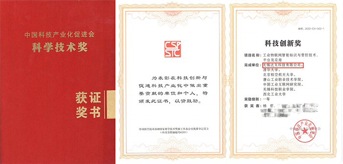 《工业物联网智能标识与管控技术、平台及应用》合作成果荣获中国科技产业化促进会颁发的第三届科学技术奖-科技创新一等奖。