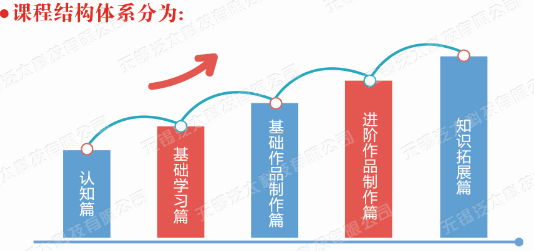 课程结构体系分为:认知篇-基础学习篇-基础作品制作篇—进阶作品制作篇-知识拓展篇