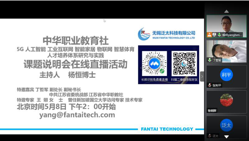 在习近平总书记和国家在人工智能、工业互联网和物联网等新基建领域发展新要求背景下,2020年5月8日下午2:00,由中华职业教育社立项的《5G与人工智能、工业互联网、智能家居与物联网、智慧体育人才培养体系研究与实践》课题在线直播说明会如期举行。本次活动针对选题、填报中疑惑,特邀课题举办方专家杨恒博士和课题组专家王翊女士做了在线说明和互动解答,助力申报者全国性课题获批立项,成功申报。