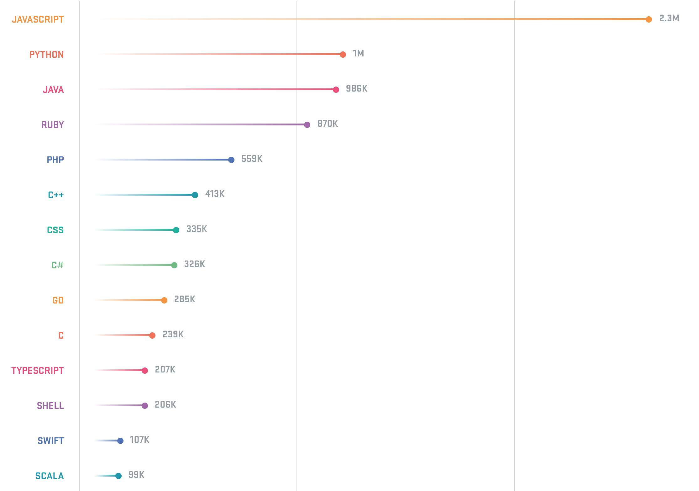 在GitHub 2017年度报告中,JavaScript 成为了年度热门的编程语言,而 Python 超越 Java 成为很受开发者欢迎、很常用的编程语言。
