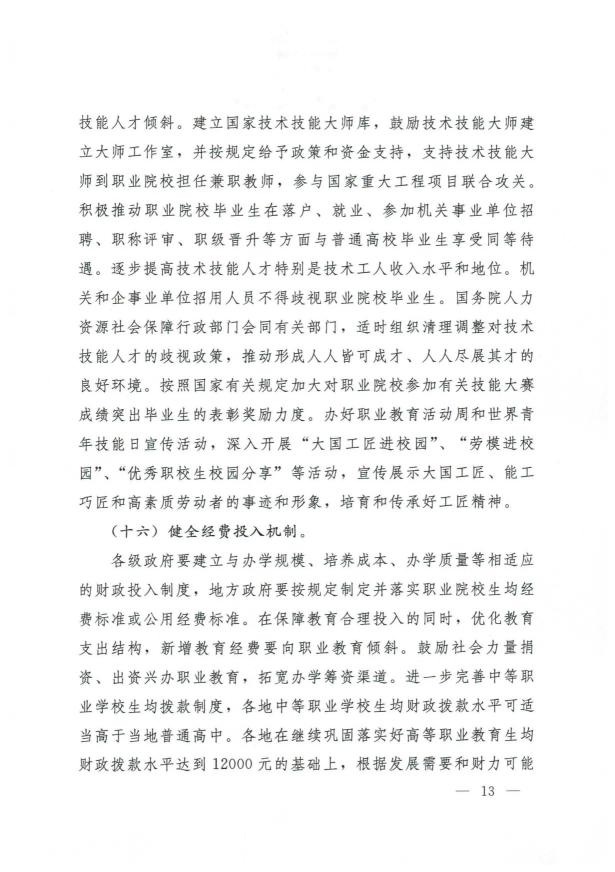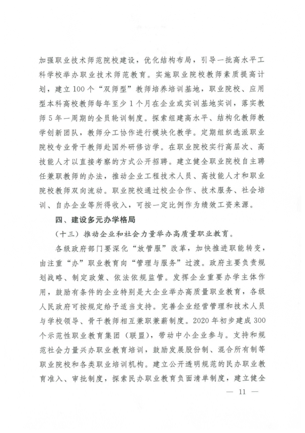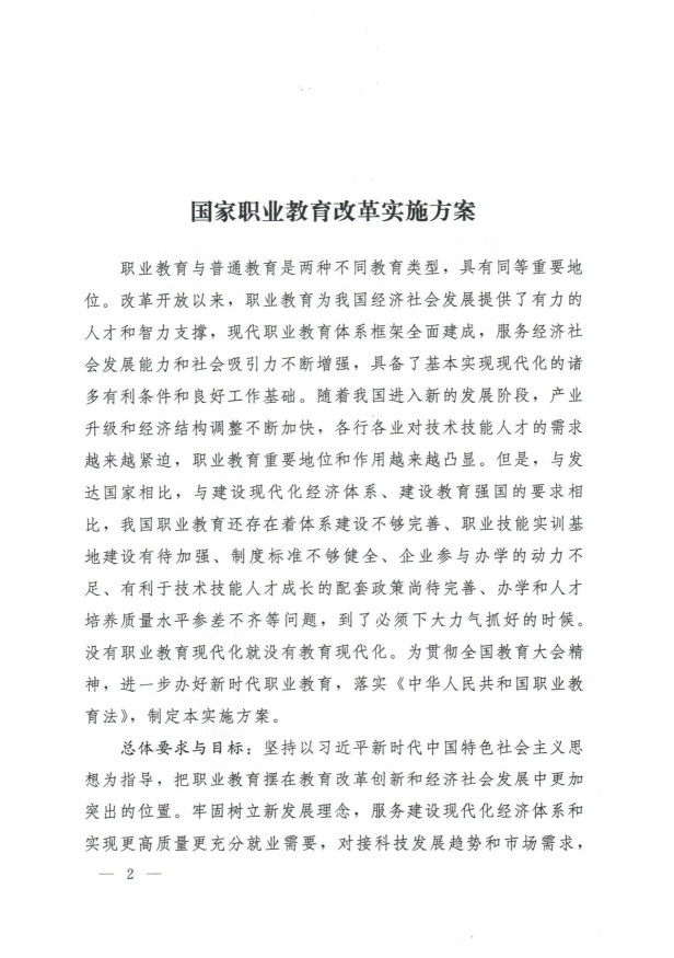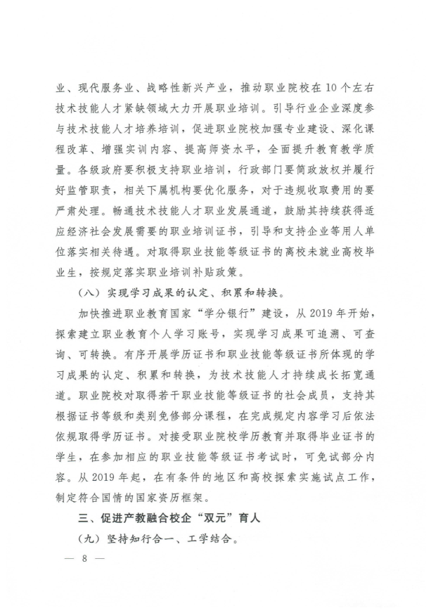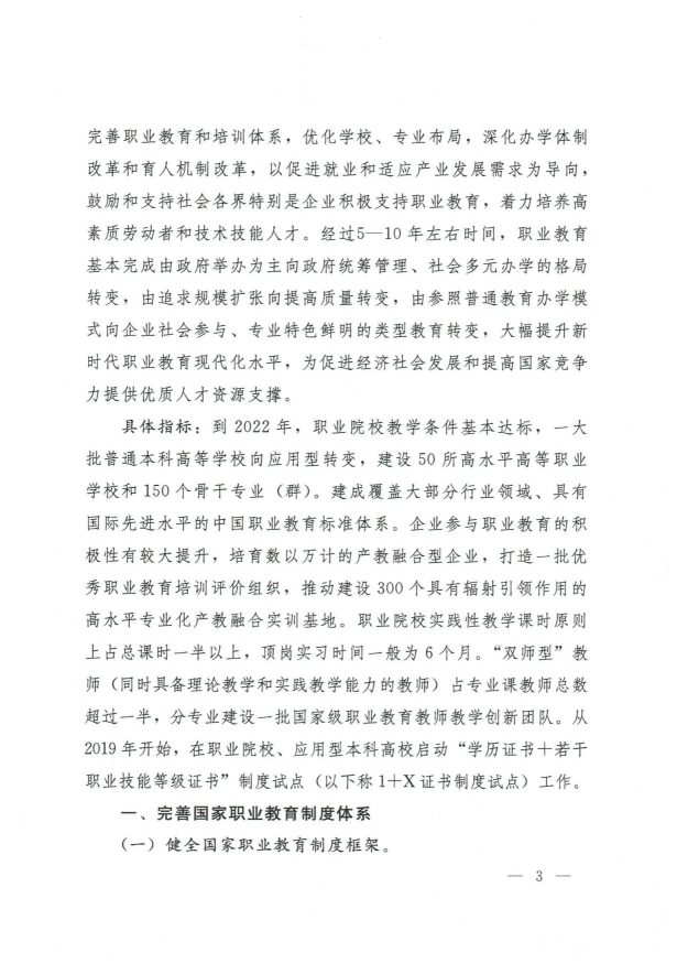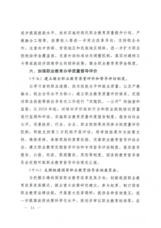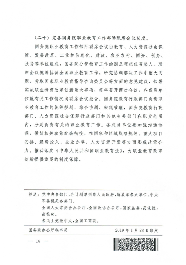 国务院关于印发国家职业教育改革实施方案的通知