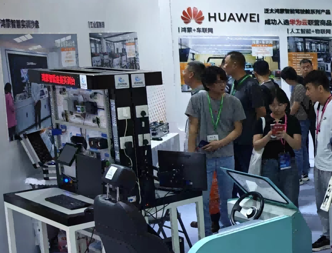 在本次展会上泛太科技展出了华为云联营商品-鸿蒙智能驾驶座舱实训系统,该系统是一款面向智能网联专业设计的智能网联自动驾驶实训平台,采用开源Open Harmony鸿蒙车机系统,搭载激光雷达、毫米波雷达、超声波雷达、组合惯导、摄像头等多种传感器技术,融入人工智能技术、虚拟仿真、数据融合技术和汽车线控技术,实现车道保持、交通标识识别、车辆及行人避障检测、疲劳驾驶、自动驾驶等智能化功能,车载信息显示、智能导航、车机娱乐等人机交互应用功能,与车载线控系统配合实现车辆自动驾驶,提升传统座舱的智能化程度。