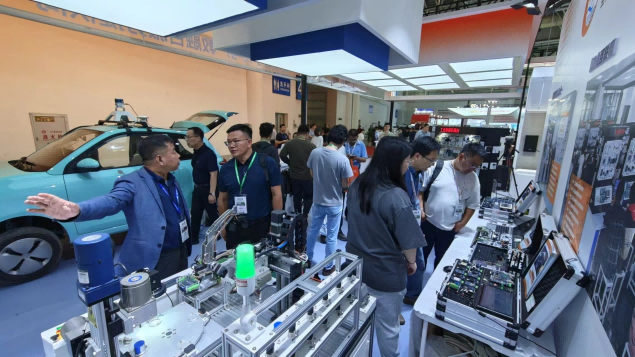 在本届展会上首次亮相的泛太鸿蒙智能座舱实训台,专为职业院校量身定制。实训平台包含中控及其显示器、鸿蒙车机及其显示器、视觉传感器、麦克风阵列、扬声器、智能座椅、车载超声波、毫米波雷达、激光雷达等硬件,具有语音交互、手势识别、人脸识别、驾驶员疲劳驾驶检测、鸿蒙车机应用娱乐、座椅智能调节、雨刮车窗控制、车载传感器监测的软件功能。平台配套完整的实验案例资源,能够满足院校对智能座舱和鸿蒙车机应用开发型人才的培养,也可作为计算机类人工智能应用人才的实验实训以及科研创新。