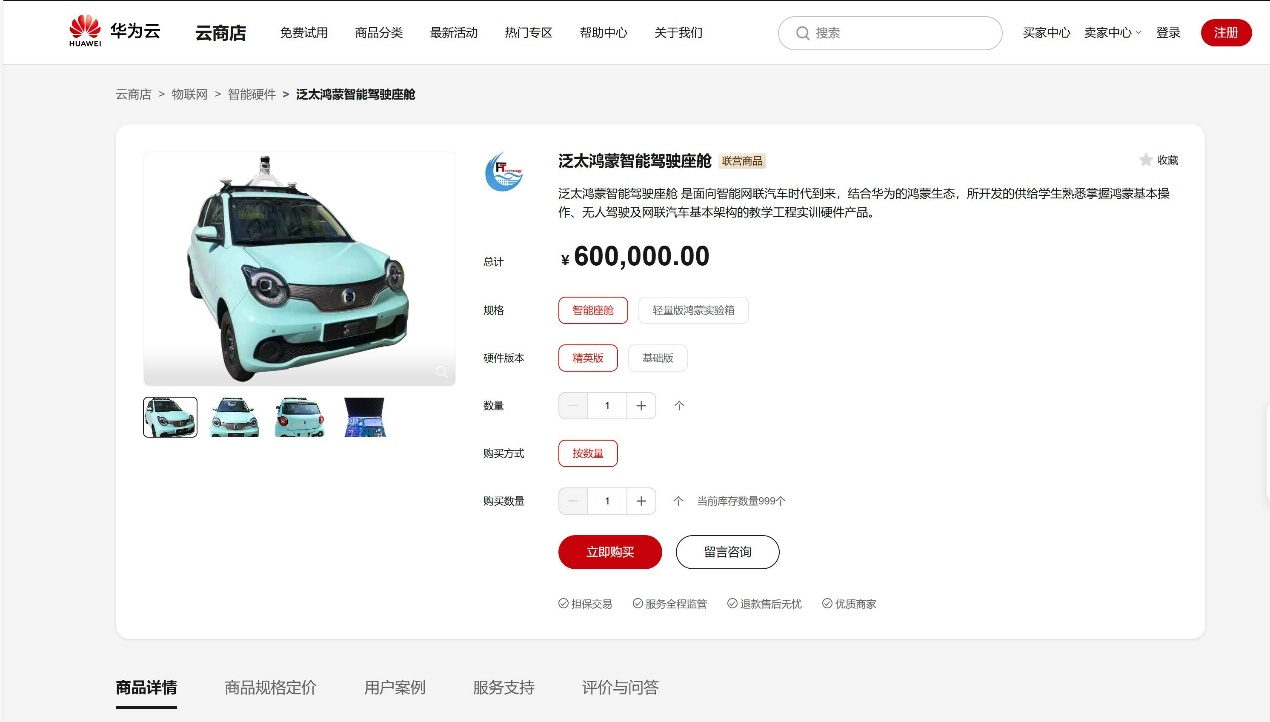 2023年泛太鸿蒙智能座舱系列产品成为华为云云商店联营商品。