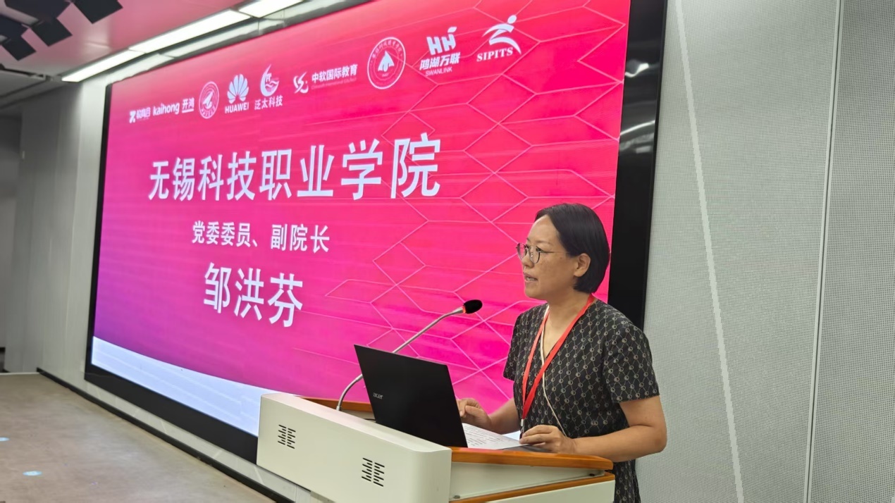 8月9日,“2025鸿蒙系统与人工智能应用师资培训”正式开班。开班仪式由魏邦来主持,无锡科技职业学院党委委员副院长邹洪芬致贺词。
