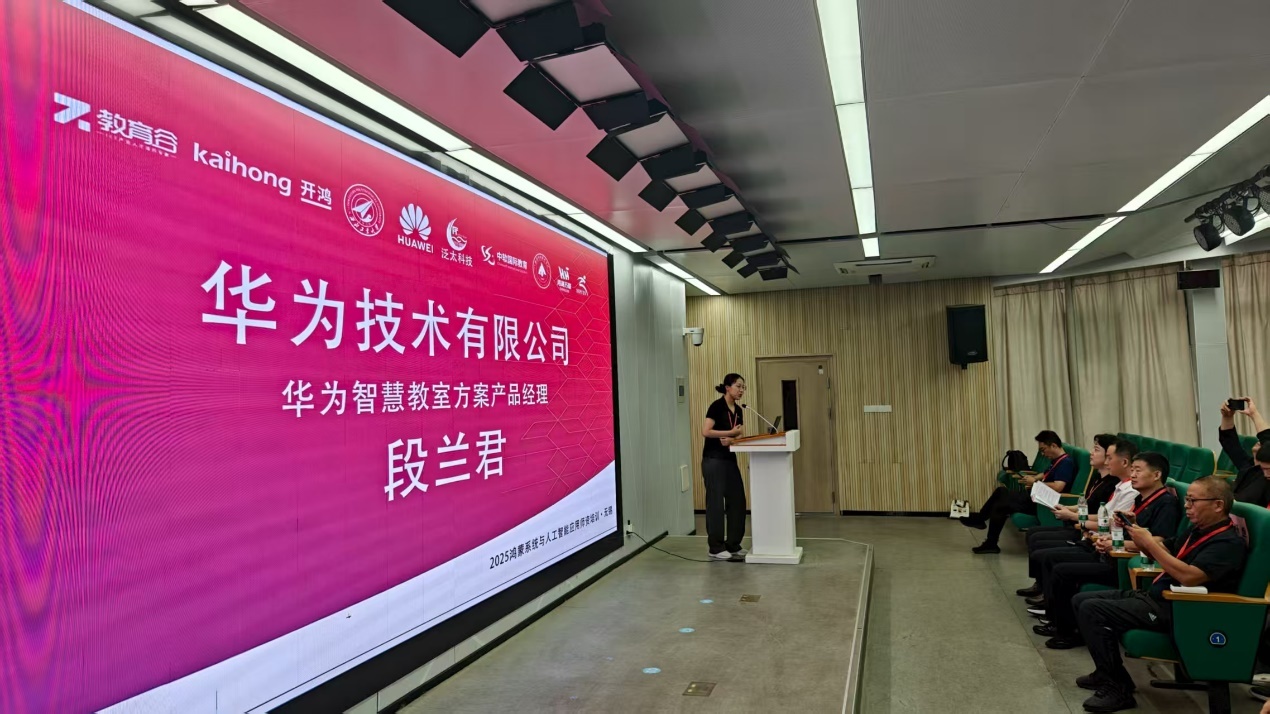 华为技术华为智慧教室方案产品经理段兰君给参加开班仪式的嘉宾和学员分享了《华为鸿蒙智慧教室解决方案》。