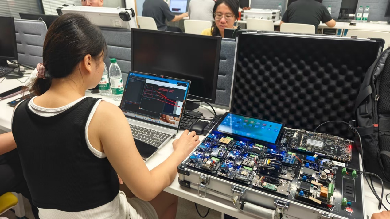 在为期5天的培训中,鸿蒙领域资深专家围绕OpenHarmony南北向应用开发技术以及HarmonyOs应用开发的理论知识与实操课程,通过专题讲座、实操演练、案例分析等多种形式,深入浅出地剖析OpenHarmony与HarmonyOs的功能特性,让广大参培教师在全场景应用开发实训中领略鸿蒙系统及生态的魅力与宽广前景。