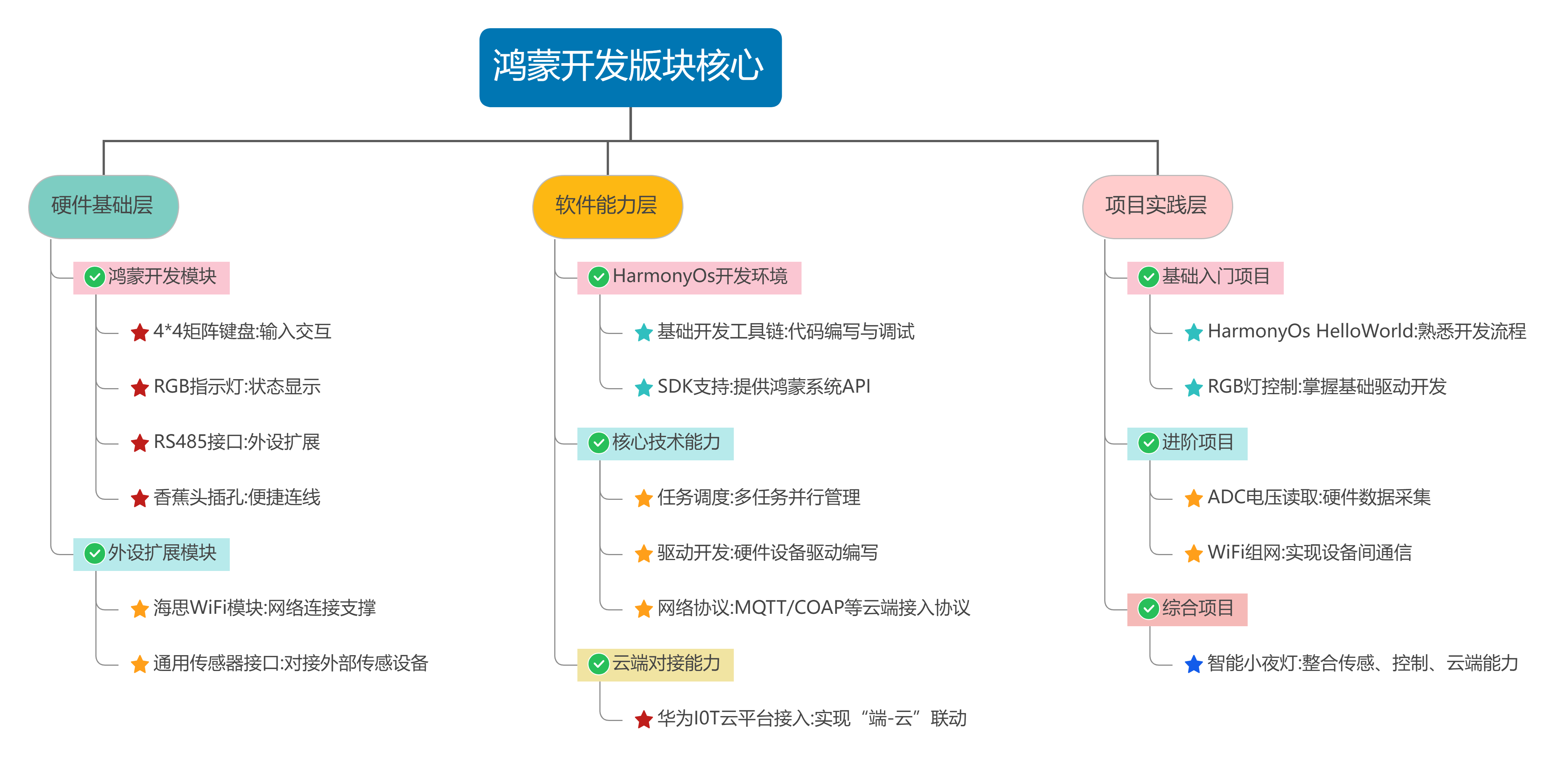 精通阶段:依托鸿蒙开发、AI 应用版块,实现 “端 - 边 - 云” 协同的智能项目,如鸿蒙智能设备接入云端、AI 异常检测系统等。