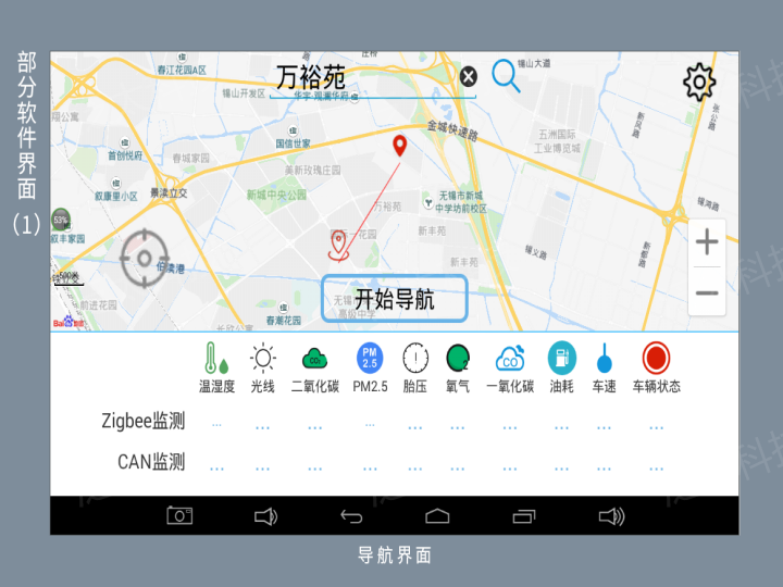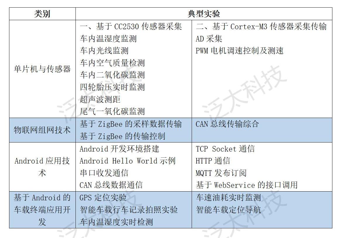 智能车载控制实训台(SeaIOT-L-IoV-01),是基于物联网传感器技术在智能汽车电子行业应用而设计的,集成全球卫星定位系统(GPS)、第四代移动通信系统(4G)、无线传感器网络(ZigBee)等通讯网络,配合Android高性能嵌入式平台、电子控制器(CAN控制器)、各种传感器(温湿度、压力、一氧化碳、二氧化碳、光线、PM2.5、摄像头等),实时感知汽车行驶方位、车速油耗、四轮胎压、环境参数等,将车载数据传入本地终端和远程平台,实现车辆系统的虚拟仪表车载数据显示、车辆定位、行车记录、倒车影像、障碍物自动避障等功能。