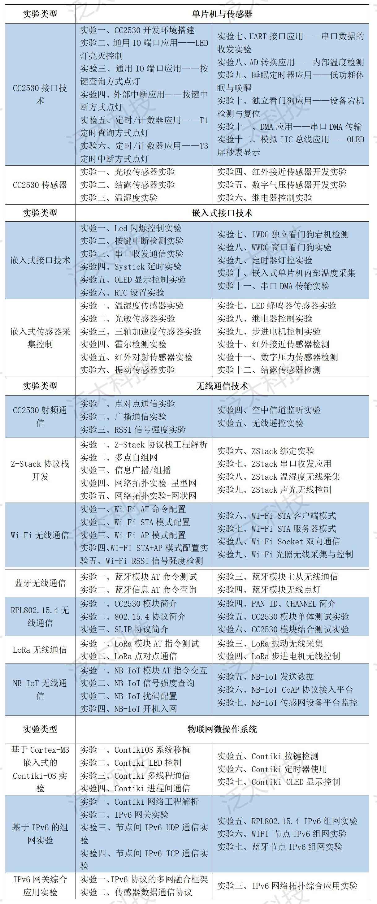 系统提供丰富的实验例程、实验手册、教学视频等课程资源,能够满足嵌入式接口技术、无线通信技术、无线传感器网络、嵌入式系统应用开发、Android移动互联网应用开发等课程的教学与实践。