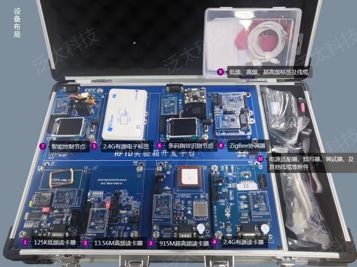射频识别基础教学实验箱(型号:SeaIOT-B-RFID-01),用于辅助RFID识别技术、生物识别等理论课程,使学生了解和掌握以RFID为主的多种识别技术的硬件、原理及用途。
